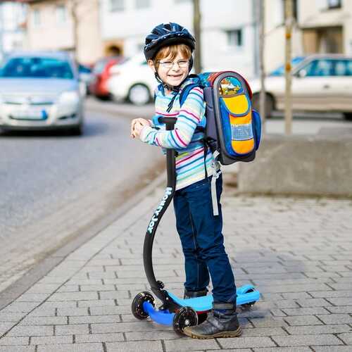New designed with a new curved handlebar our kids scooter is the best three-wheel scooter for little ones learning to balance. The kick scooter is for kids whose age is 6 years old and older. 2-Height t-bar for child to adjust wide raised deck surface for a super grip and secure feel and easy-to-use rear fender foot brake. In addition the easy-folding mechanism allows you to take the teen scooter anywhere and everywhere. The bright colors of this attractive kids scooter with pu flashing wheels are sure to appeal to any young boy and girl. Ideal for beginner riders!