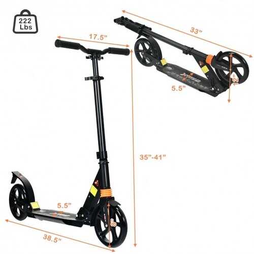 Specifications: Color: Black/white (as picture show) Material: AluminumAlloy + PU + rubber Unfolded dimension: 38.5" x 17.5" x 35"- 41" (L x W x H) Folded dimension: 33" x 5.5" x 12"(L x W x H) Wheel Diameter: 8" Suitable age: 8+ Weight capacity: 222 lbs Net weight: 11 lbs Package includes: 1 x Scooter 1 x Carrying strap 3 x Wrench 1 x Instruction