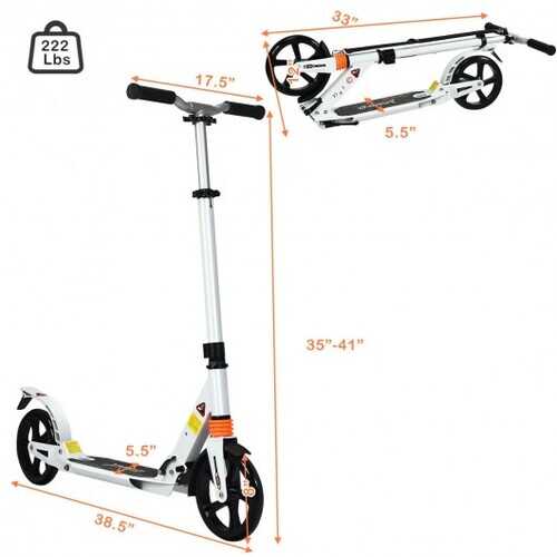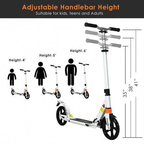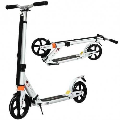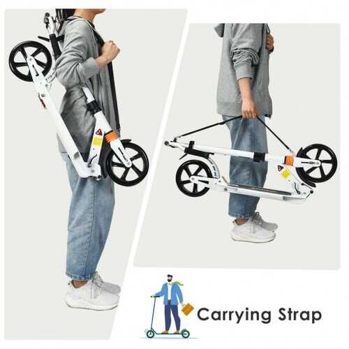 Folding Aluminium Adjustable Kick Scooter with Shoulder Strap-White