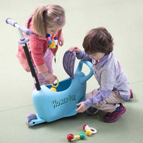 3 in 1 Storage Kids Kick Wheel Scooter w/ Adjust Handle Bar-Blue