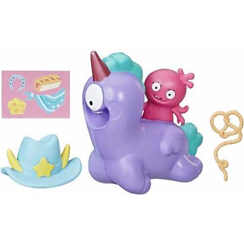 2 UGLYDOLLS FIGURES: Kids can get 2 toy figures in 1 pack -- Moxy and Peggy FUN ACCESSORIES INCLUDED: Cowgirl hat, pretzel lasso, and sticker inside STRETCHY MATERIAL: Moxy's hat and Peggy's body are made of a flexible, stretchy material, the kind kids will love to squish and squeeze again and again