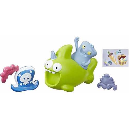 2 UGLYDOLLS FIGURES: Kids get 2 toy figures in 1 pack -- Babo and Sharwhal FUN ACCESSORIES INCLUDED: Pirate hat, baguette sword, and sticker inside STRETCHY MATERIAL: Babo's hat and Sharwhal's body are made of a flexible, stretchy material, the kind kids will love to squish and squeeze again and again